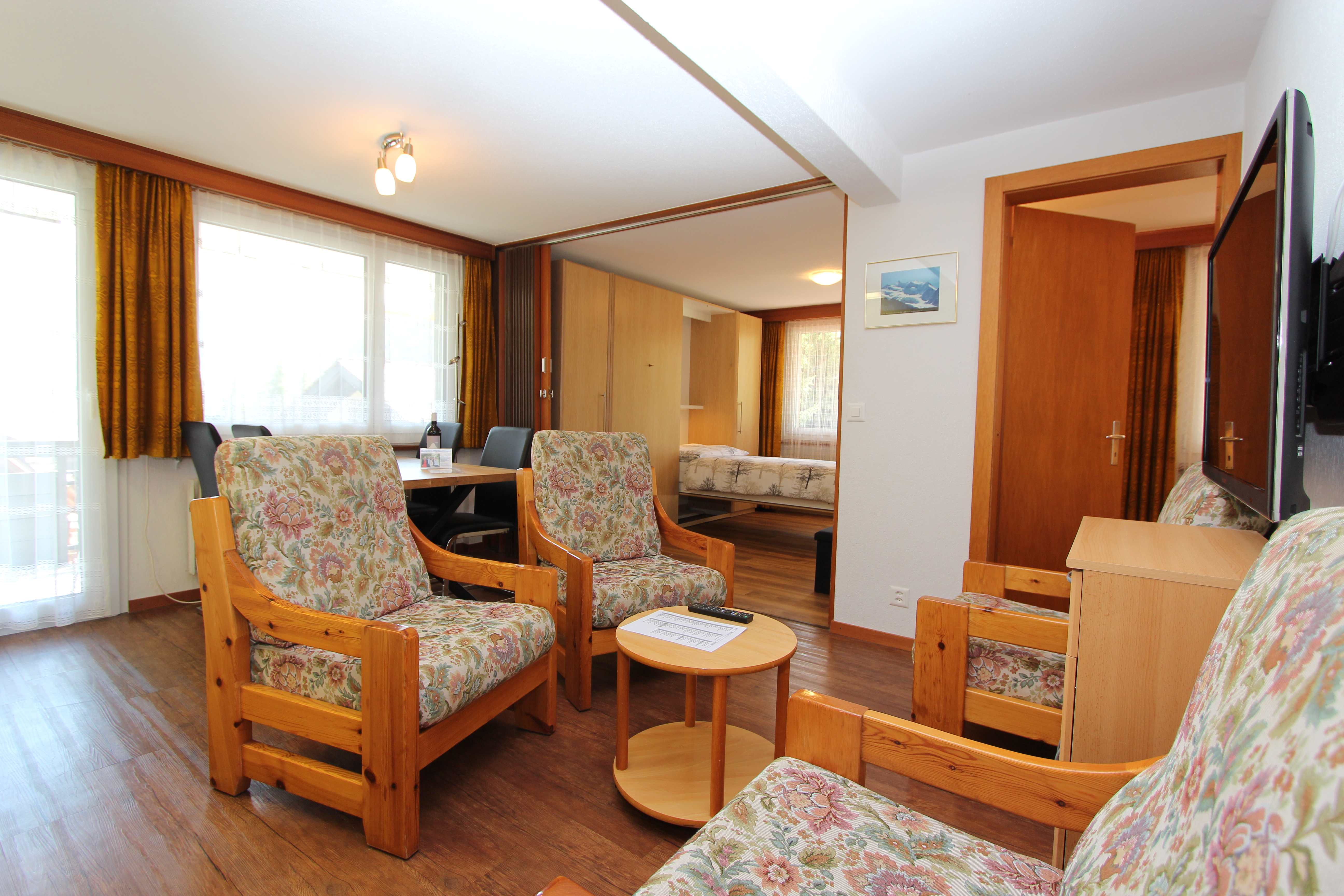 - 1 Schlafzimmer mit 2 Klappbetten ( schliessbar mit Falttüre zum Wohnzimmer )